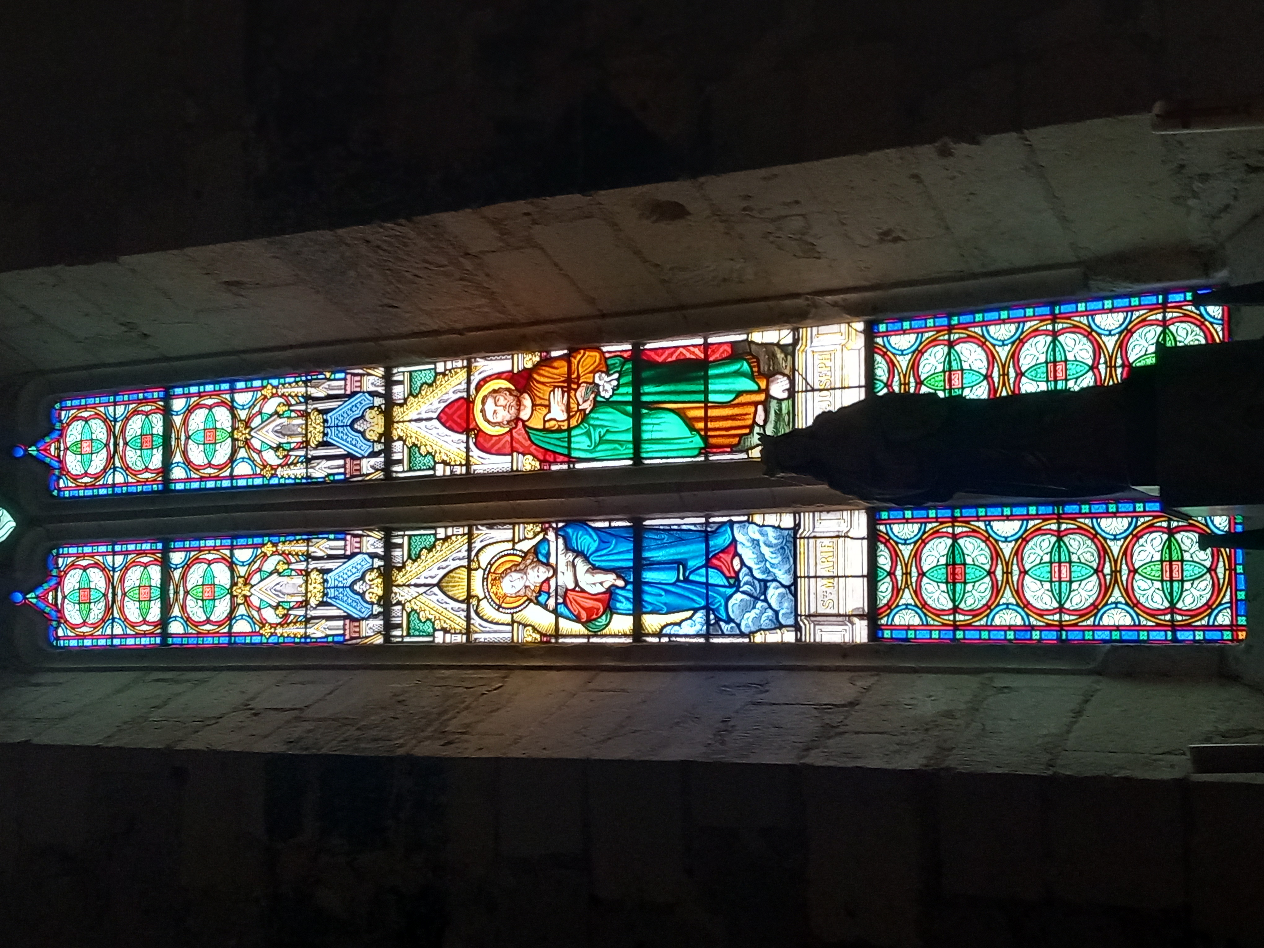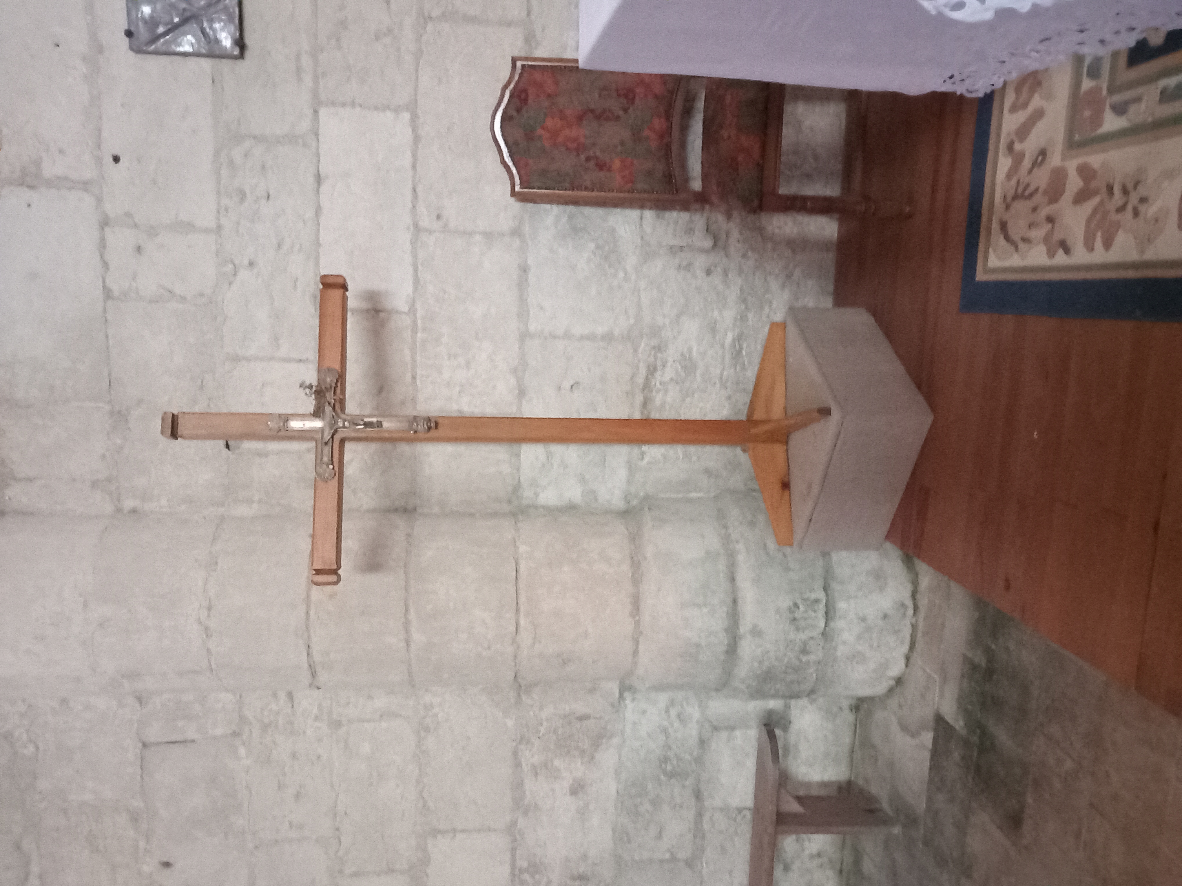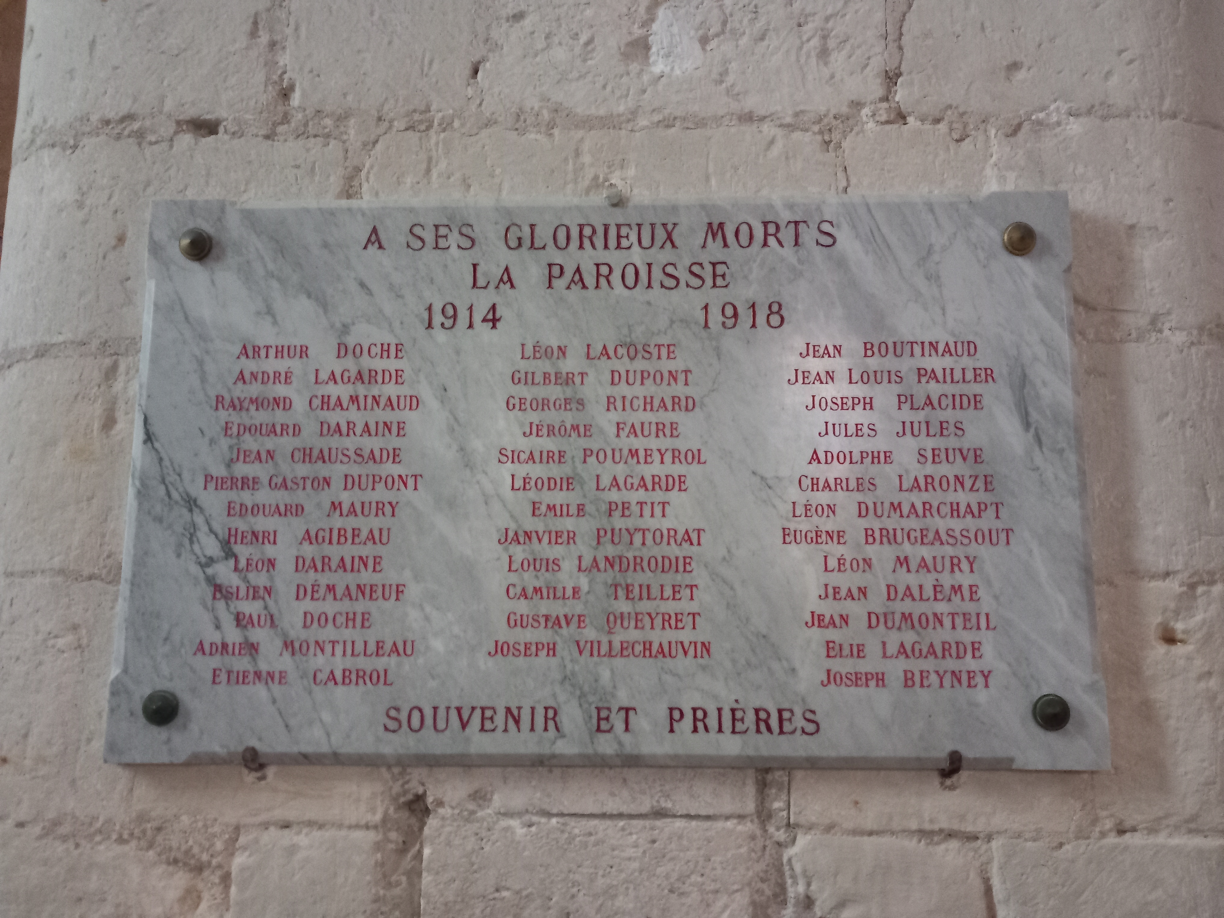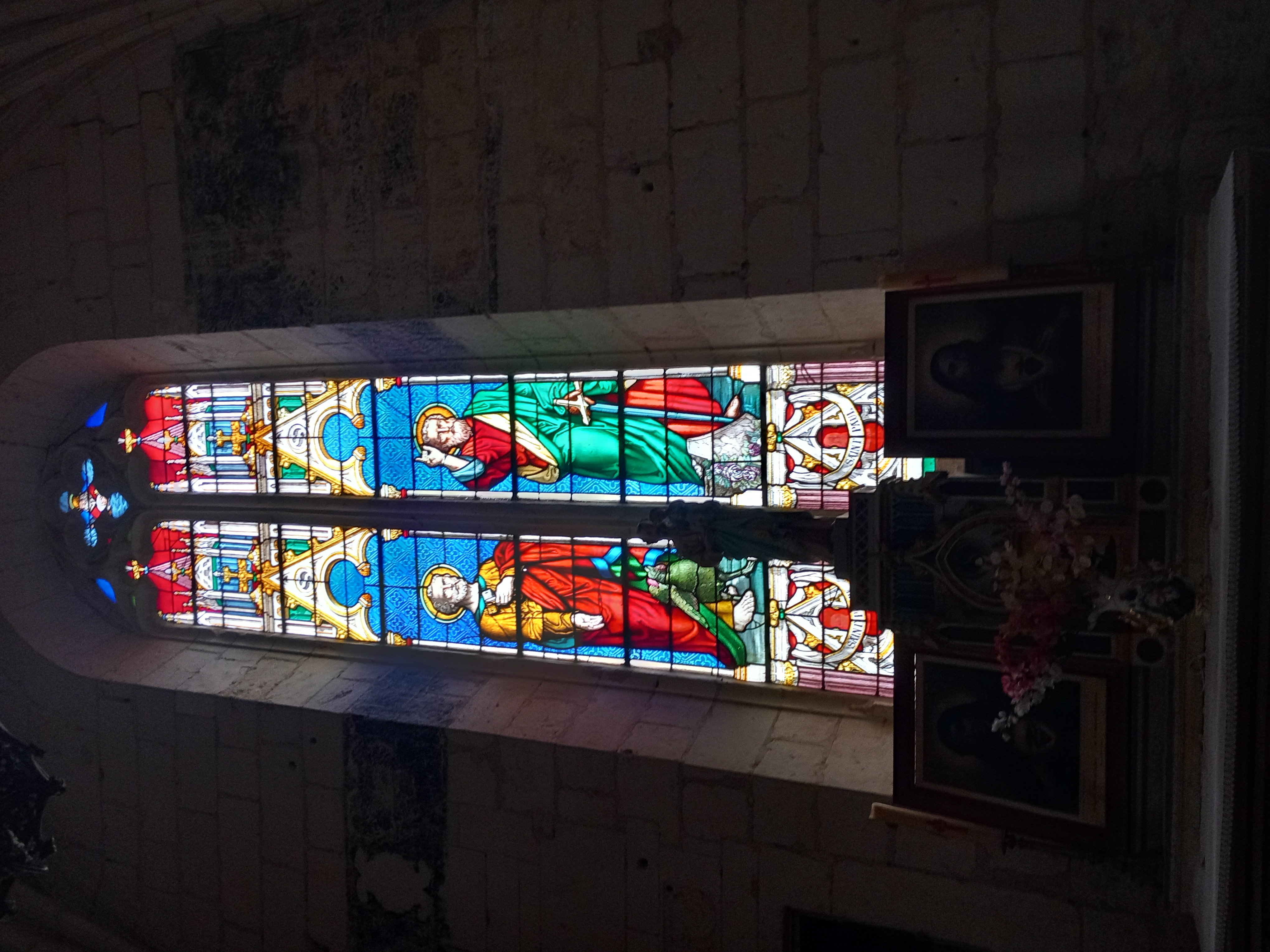 Enfin, nous pouvons observer à environ quatre mètres de haut une litre funéraire sur laquelle sont peints les écus des familles riches avoisinantes. Cependant, une seule est encore visible, celle de La Cropte de Chantérac.